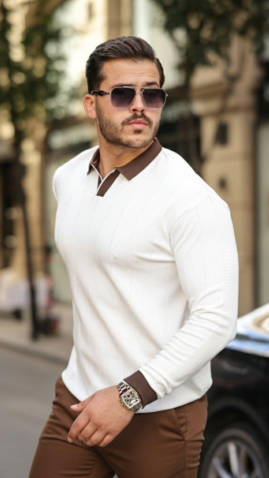 Erkek Renkli Yaka Manşet Uzun Kollu Triko