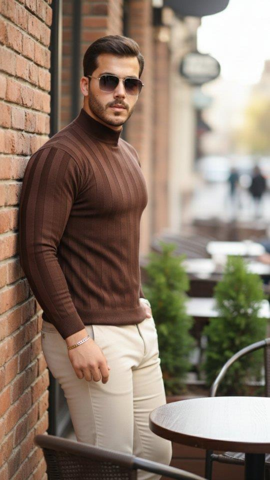 Erkek Yarım Balıkçı Yaka Kabartma Desenli Triko