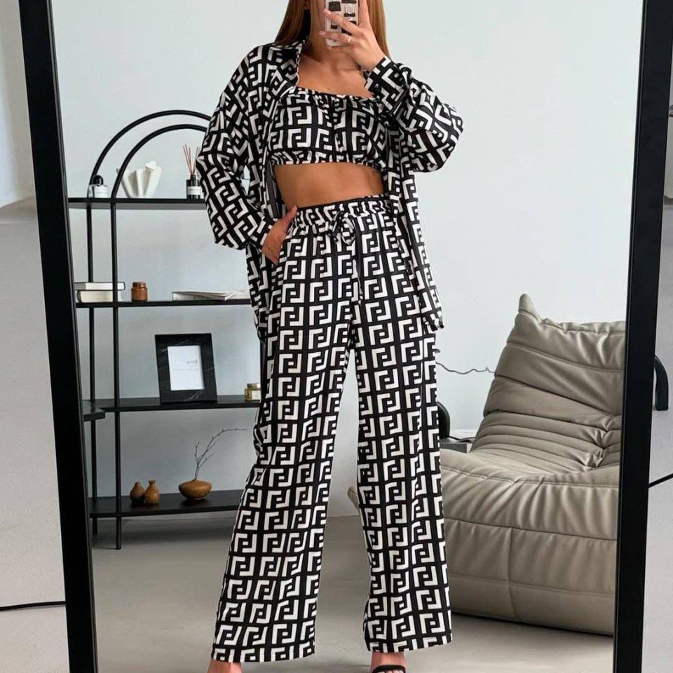 Kadın Bağcık Detaylı Dıjıtal Baskılı Dalgıç Kumaş 3;lü Takım