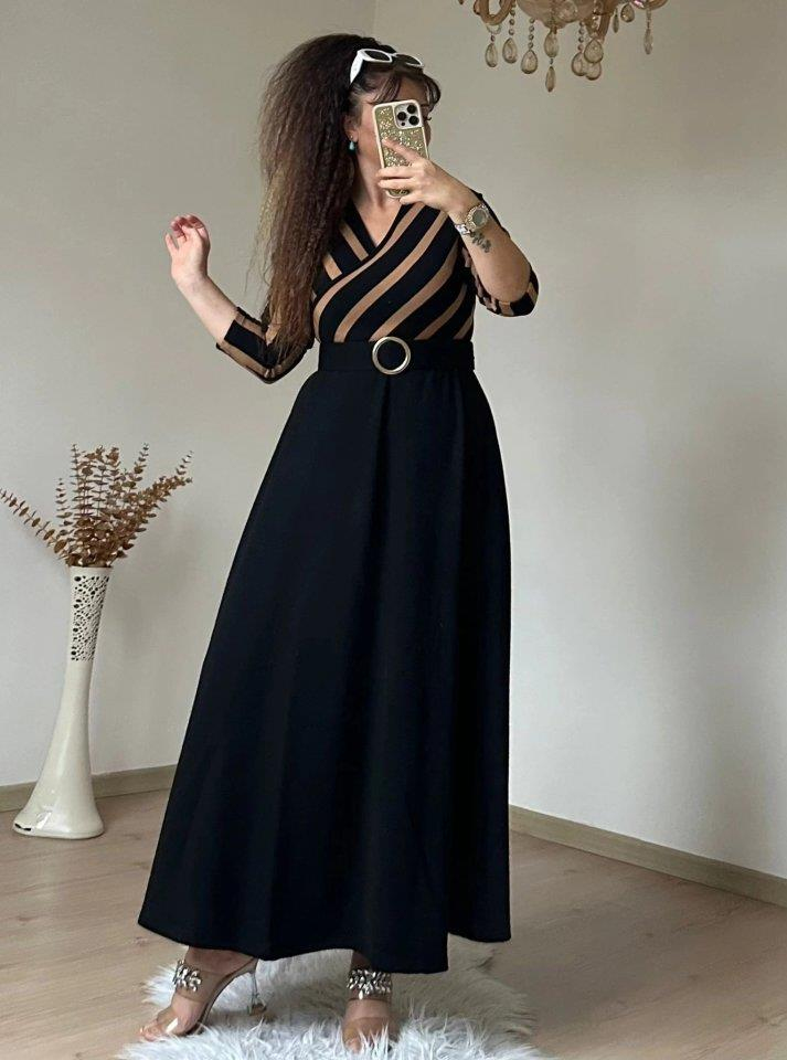 Kadın çizgi Detay Kruvaze Yaka Maxi Boy Triko Elbise