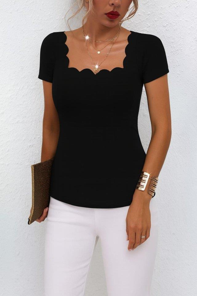 Kadın Kısa Kollu Kare Lazer Yakalı Janjan Krep Bluz