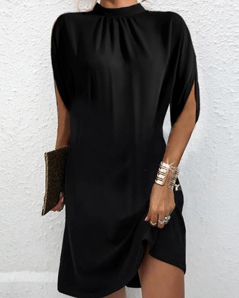 Kadın Ters Kol Detaylı Yarım Boğazlı Viskon Kumaş Mini Boy Elbise