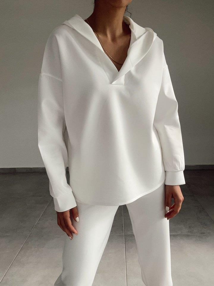 Kadın Uzun Kol V Yaka Kapüşon Detay Sweat Ve Yüksel Bel Eşofman Ikili Takım