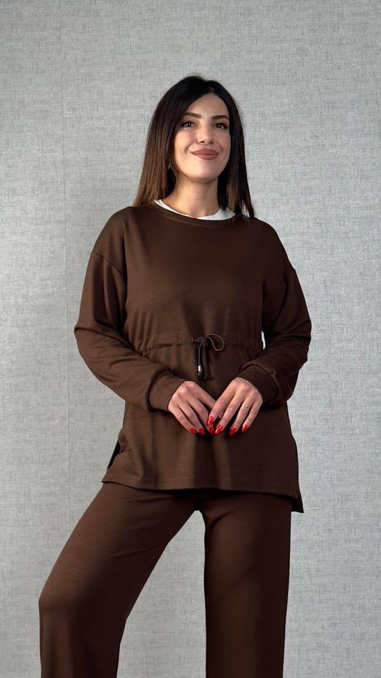 Kadın Uzun Kollu Yaka Ve Büzgü Detay Tunik Ve Pantolon Ikili Takım